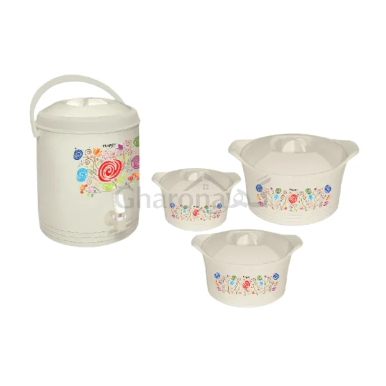 The Happy Green Life Modish Hotpot features premium insulation and a modern design to keep meals warm and fresh. Available at Gharona, H.526 Shahzad Plaza, College Road, Rawalpindi perfect for home use, gatherings, and gifting.