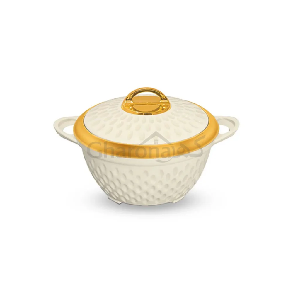 Crafted from high-quality, food-grade materials, the hotpot is perfect for keeping rice, curries, rotis, snacks, and other dishes at the ideal serving temperature. The secure lid prevents heat loss and spills, while the ergonomic handles provide safe and comfortable handling. The elegant gold finish adds sophistication to any dining table, making it perfect for everyday use, family gatherings, parties, and gifting.