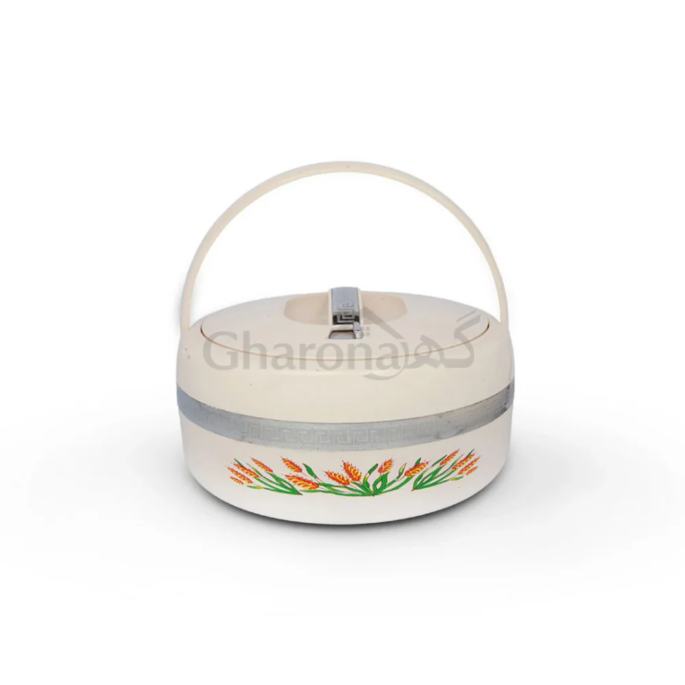 The Happy Hot Food Server features premium insulation and a secure lid to keep meals warm and fresh. Available at Gharona, H.526 Shahzad Plaza, College Road, Rawalpindi perfect for home use, parties, and gifting.
